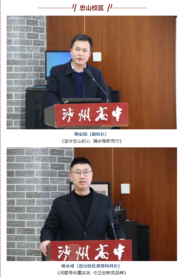 述職報告結(jié)束后,陳云超校長對一年來各部門的辛勤付出和取得的成績予以肯定。他說,所有干部精心準(zhǔn)備,展現(xiàn)出精氣神,展現(xiàn)出對學(xué)校的情懷,這就是瀘州高中再創(chuàng)輝煌的底氣。2024年,全體瀘高人將繼續(xù)以習(xí)近平新時代中國特色社會主義思想和黨的二十大精神為指引,牢記為黨育人、為國育才的初心使命,面對新格局,迎接新挑戰(zhàn),踔厲奮發(fā)、篤行不怠,在集團(tuán)化辦學(xué)的新征程上奮力展現(xiàn)瀘高人的新作為和新?lián)?dāng)。