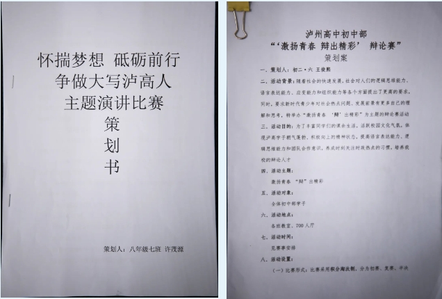 一份份精心制作的活動(dòng)策劃書彰顯了孩子們的創(chuàng)新意識(shí)、活躍的思維和獨(dú)立思考能力。瀘州高中初中部教育工作,旨在提升孩子成長的內(nèi)驅(qū)動(dòng)力,構(gòu)建更加系統(tǒng)科學(xué)、更具時(shí)代性的成長體系,讓每一個(gè)孩子獲得最適合自己的成長土壤,讓每一棵充滿生命力的樹苗都能得到茁壯生長的空間,呼應(yīng)時(shí)代之需,培育時(shí)代新人。