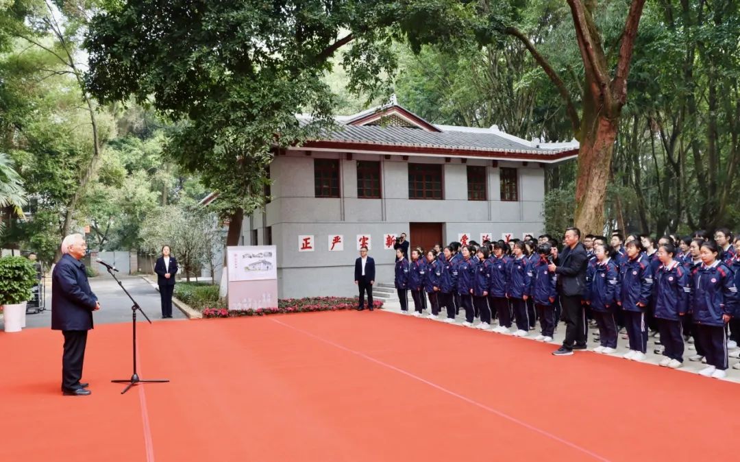 ▲張強院士與學校黨委書記、校長陳云超一起為五四新樓揭牌,標志著瀘州高中70周年辦學成果展正式啟動。