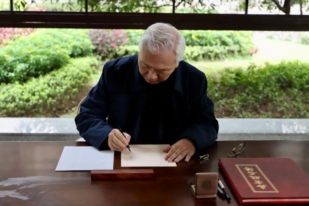 ▲張強院士在聞雅閣寫下“志存高遠 超越自我”八字寄語,為母校七十華誕送上美好祝愿。