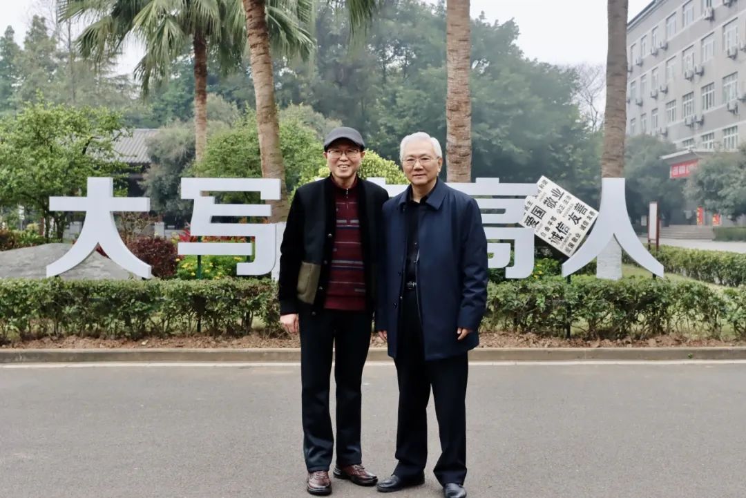 ▲張強院士與其弟弟張濤(西南醫(yī)科大學教授、瀘州高中78級校友)在“大寫瀘高人”前合影留念。