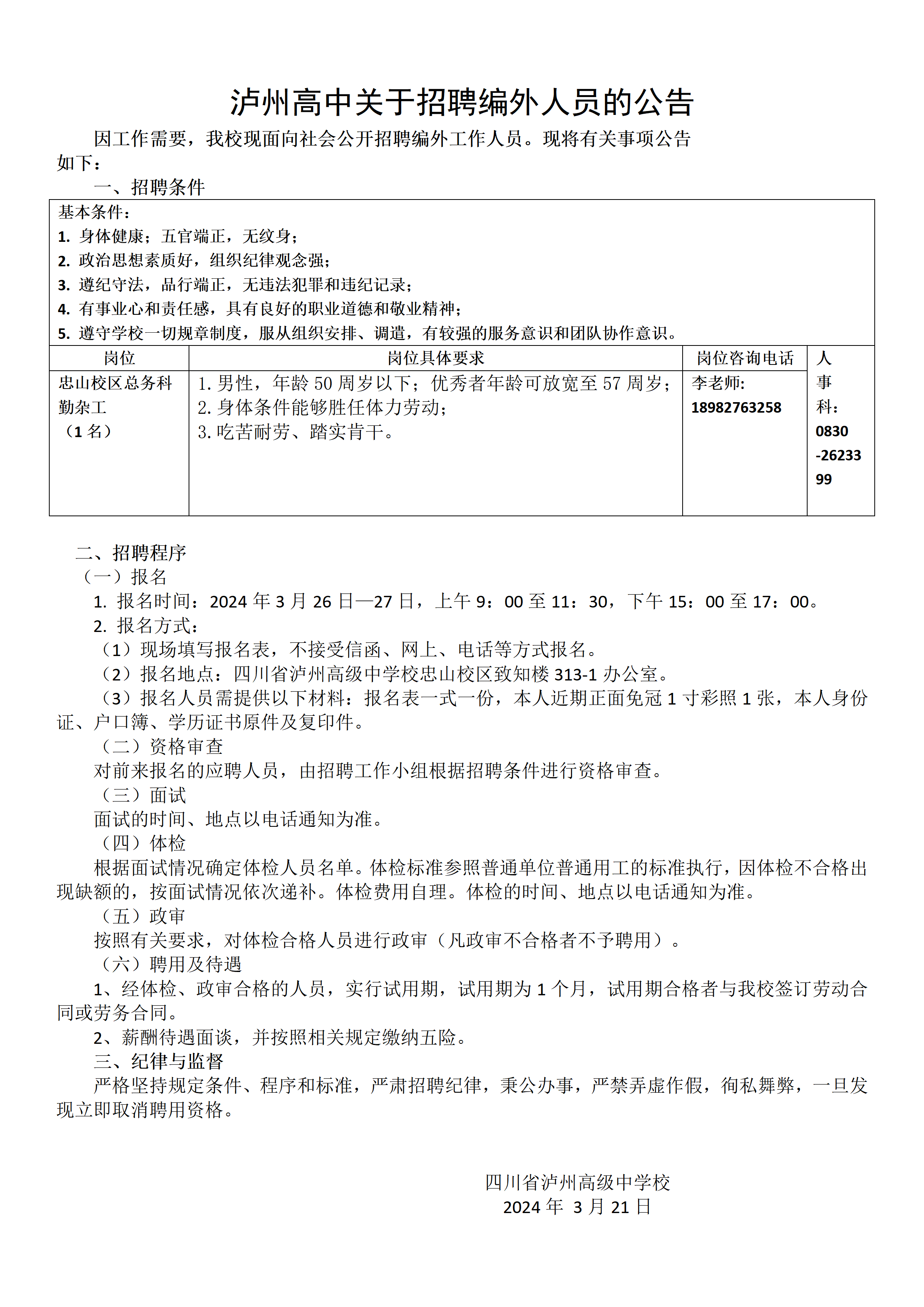 瀘州高中關(guān)于招聘編外人員的公告