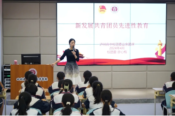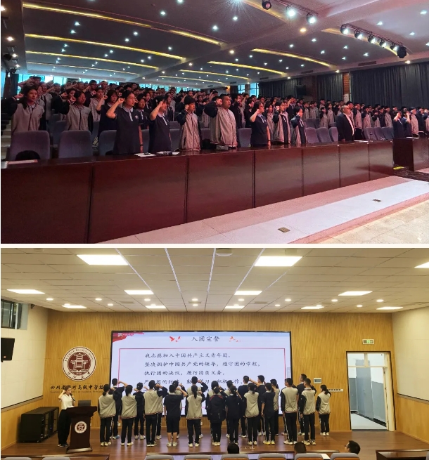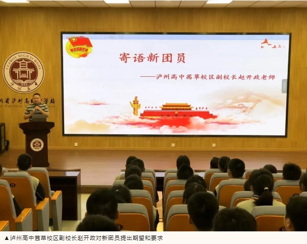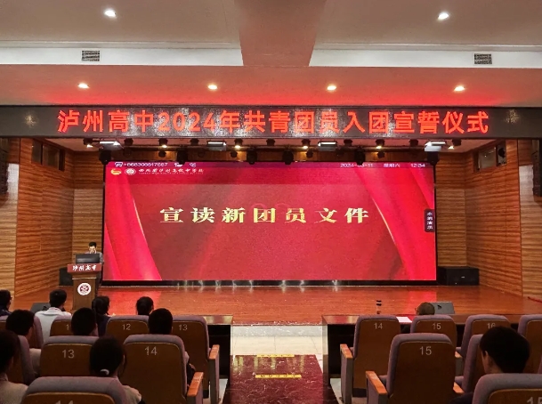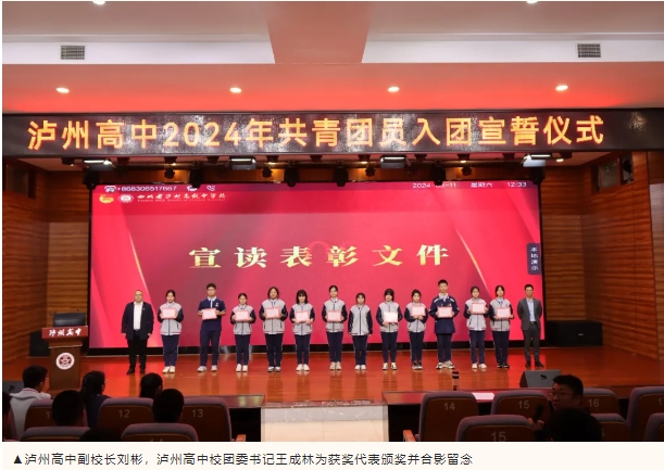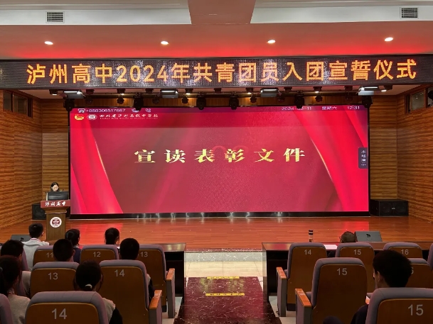 瀘州高中校團(tuán)委書記王成林宣讀了《共青團(tuán)四川省瀘州高級(jí)中學(xué)校委員會(huì)關(guān)于發(fā)展劉順悅、張翰文、熊宇欣等500名先進(jìn)青年為共青團(tuán)員的決定》,并祝賀同學(xué)們成為中國共產(chǎn)主義青年團(tuán)光榮的一份子。