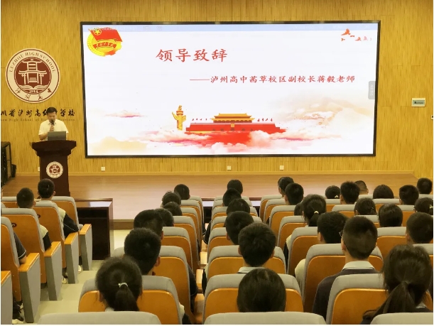 瀘州高中茜草校區(qū)副校長蔣毅致辭,他給新團(tuán)員們強(qiáng)調(diào)了入團(tuán)的重要意義。