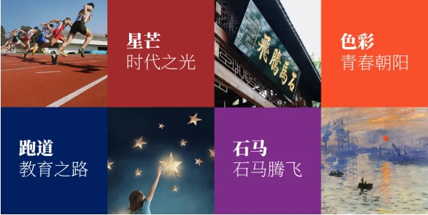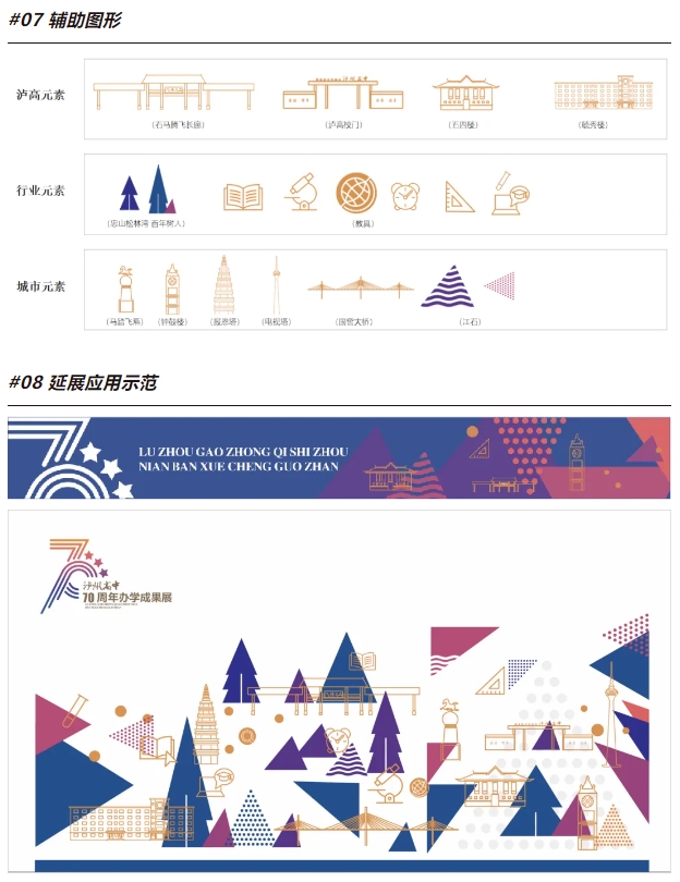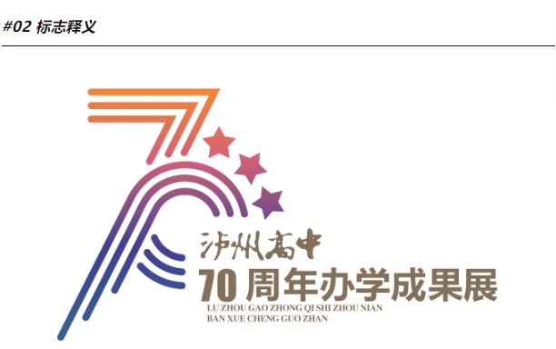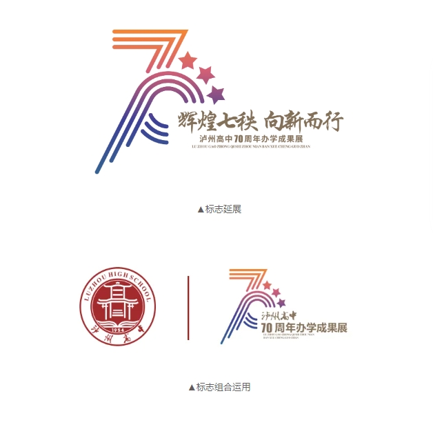標(biāo)志以閃耀的三顆星作為輔助設(shè)計元素,既象征了瀘高學(xué)子的三年青春年華,也代表了瀘州高中的三大校區(qū),承70年光榮與夢想,聚青春之火,燃時代之光!
