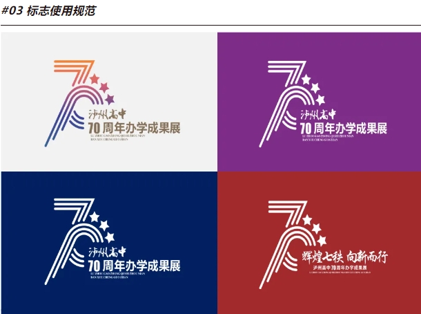 標(biāo)志在色彩語言上,采用了朝陽中亮麗的橙紫漸變。橙,表達(dá)了青春和活力;紫,寄寓了希望和未來。我們是初生的朝陽,我們以熱愛赴山海,以夢想創(chuàng)不凡。七秩正青春,奮楫再揚(yáng)帆 。