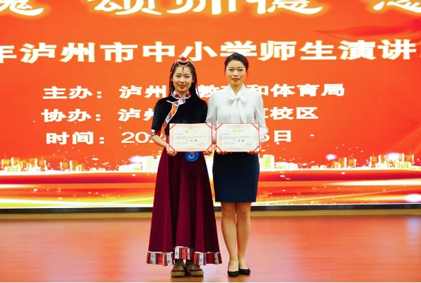 演講比賽分為主題演講和即興演講兩個(gè)部分,教師組和學(xué)生組雙會場同時(shí)舉行,全市36名參賽選手同臺競技,瀘州高中參賽選手陳麗娜老師、許欣月同學(xué)均表現(xiàn)優(yōu)異。許欣月同學(xué)獲學(xué)生組一等獎(jiǎng)第一名,陳麗娜老師獲教師組一等獎(jiǎng)第二名。
