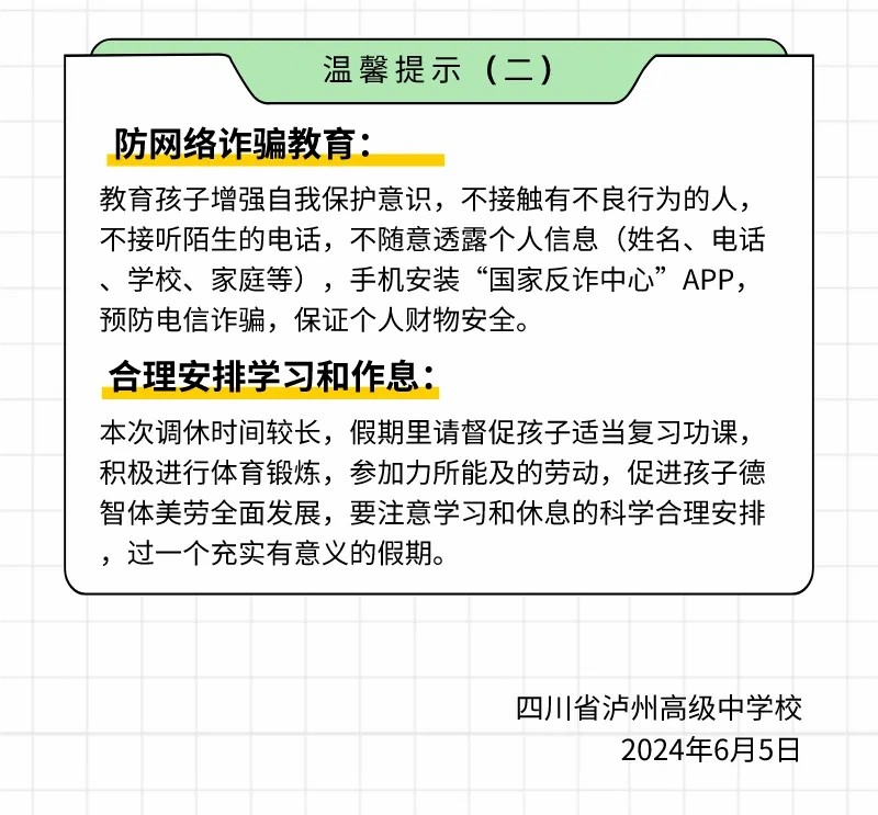 瀘州高中2024年高考調(diào)休和端午節(jié)放假通知