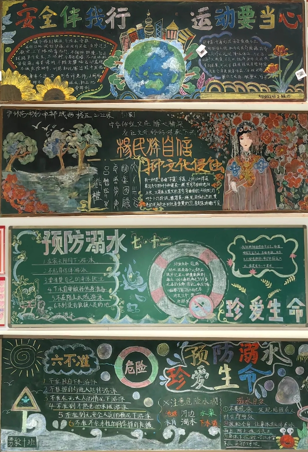 為了讓安全意識深入每位學(xué)生心中,初中部開展以“安全教育”為主題的黑板報比賽,各班積極參與,創(chuàng)作了一幅幅設(shè)計新穎、色彩鮮艷,圖文豐富、內(nèi)容切合主題的精美作品。