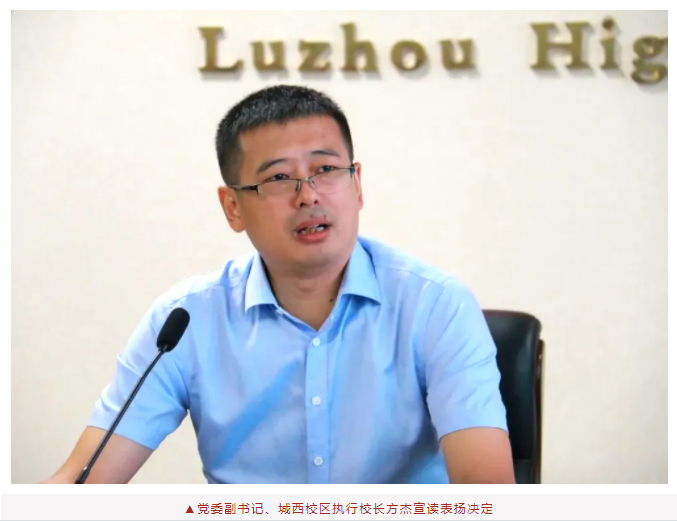 瀘州高中黨委副書記、城西校區(qū)執(zhí)行校長(zhǎng)方杰,忠山校區(qū)執(zhí)行校長(zhǎng)、瀘州高中副校長(zhǎng)明安田,副校長(zhǎng)李奎,城西校區(qū)高2021級(jí)年級(jí)主任黃先明,教務(wù)科科長(zhǎng)唐道偉,招生辦公室主任胡鵬,以及獲得高2024屆優(yōu)秀畢業(yè)生稱號(hào)的同學(xué)代表出席會(huì)議。會(huì)議由副校長(zhǎng)劉彬主持。
