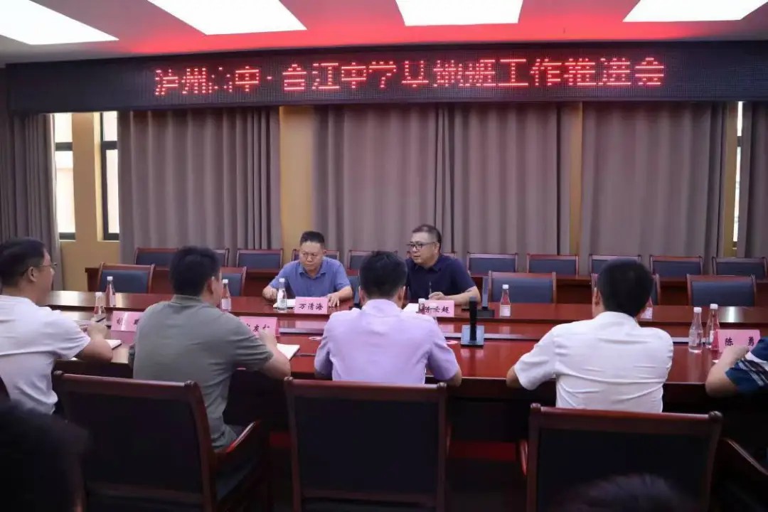 在瀘州高中·合江中學基地班工作推進會上,陳云超一行同合江中學黨委書記萬清海、校長成友權等圍繞基地班辦學定位、辦學目標、管理要求、考核評估等內容進行了深入討論。