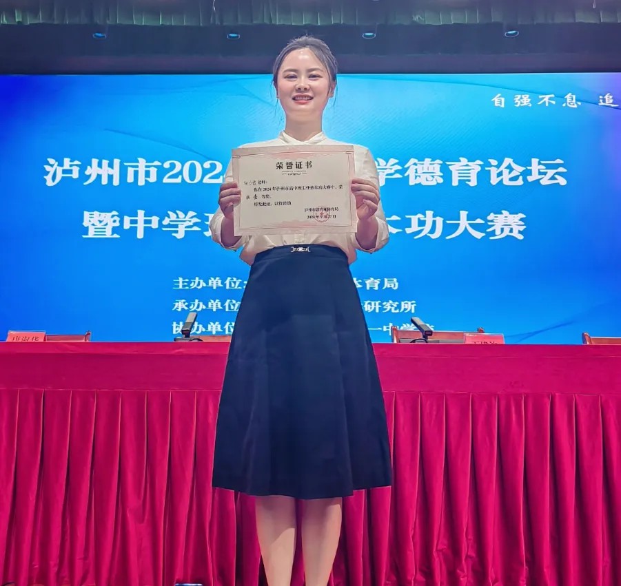 近日,在瀘州市2024年中小學(xué)德育論壇暨班主任基本功大賽中,瀘州高中向小霞老師榮獲高中組一等獎。