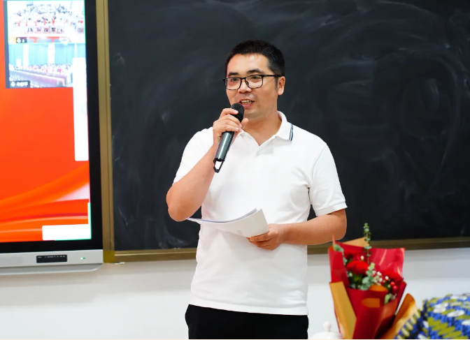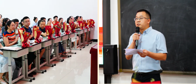 瀘州高中副校長明安田致辭,宣布2024年“青藍工程”師徒結(jié)對工作正式啟動,并宣讀2024年“青藍工程”師徒結(jié)對名單。