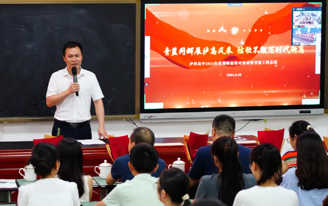為切實做好新教師培養(yǎng),發(fā)揮骨干教師的“傳、幫、帶”作用,并對上一學期“青藍工程”進行總結(jié),9月26日下午,在忠山校區(qū)致知樓108會議室舉行了瀘州高中2024年秋期師徒結(jié)對活動暨“青藍工程”總結(jié)會。會議由茜草校區(qū)教務科副科長石偉主持。