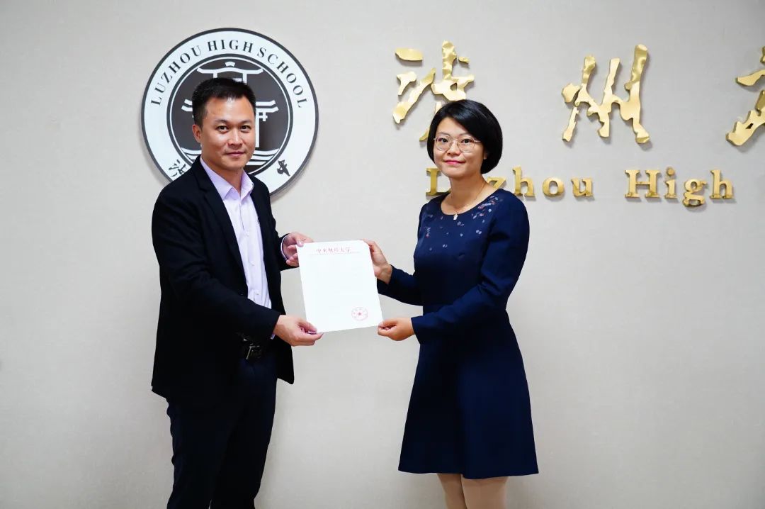 瀘州高中建校70周年之際,瀘州高中“中央財經(jīng)大學(xué)優(yōu)秀生源基地”授牌簽約儀式在忠山校區(qū)致知樓舉行。瀘高校友、中央財經(jīng)大學(xué)辦公室副主任劉星,中央財經(jīng)大學(xué)校友田心若,瀘州高中副校長明安田、副校級干部羅德強等出席儀式。
