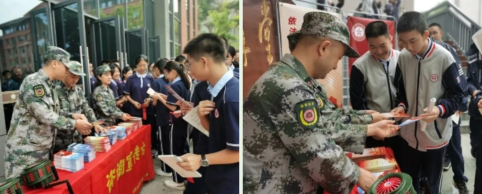 活動現(xiàn)場專門設置了國防知識宣傳臺,提供了人防裝備的展示體驗設施,發(fā)放了《全民國防教育》《防災減災手冊》及軍事設施保護相關資料,圖文并茂地普及安全知識,讓同學們近距離感受并且接受軍事設施保護法律教育,形成自覺遵守《軍事設施保護法》的法律意識。