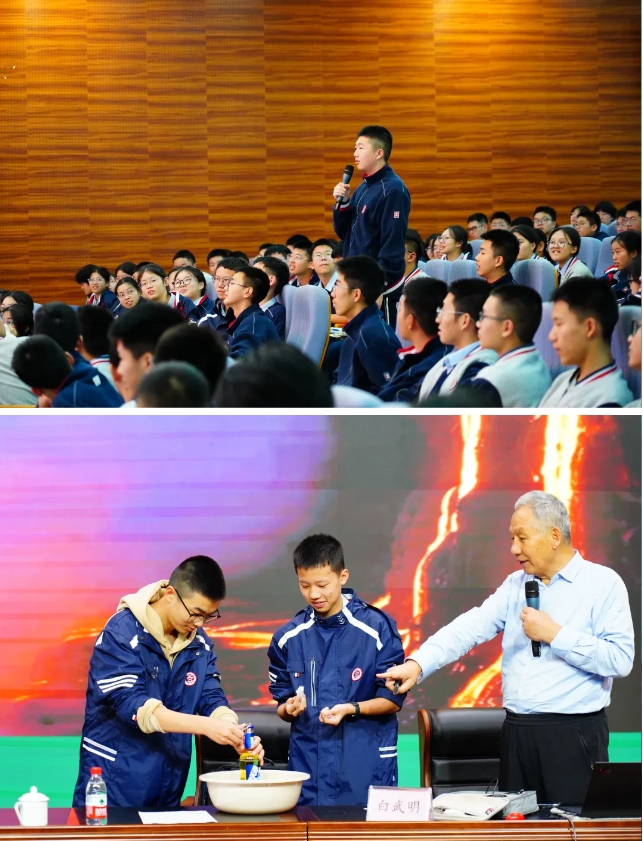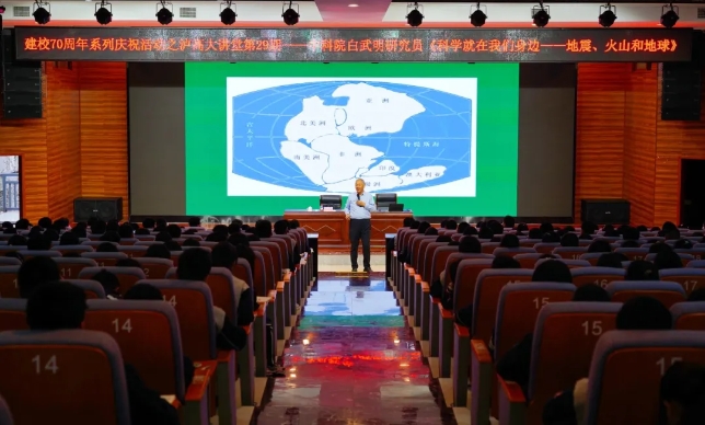 啟動儀式后,白武明教授以《科學(xué)就在我們身邊—地震、火山和地球》為題,為400余名瀘高師生帶來了首場宣講,拉開了中國科學(xué)院老科學(xué)家科普演講團(tuán)赴瀘州開展“筑夢未來”科普進(jìn)校園活動序幕。