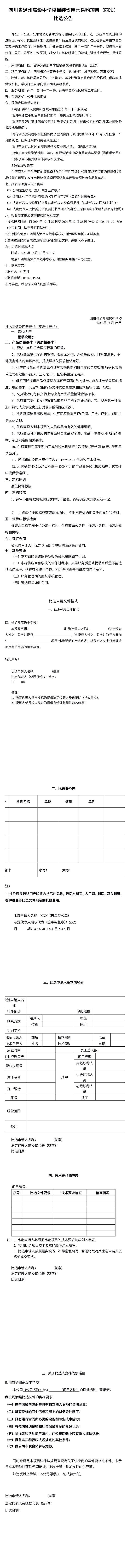 四川省瀘州高級中學(xué)校桶裝飲用水采購項(xiàng)目(四次) 比選公告