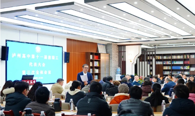 2023年1月18日,瀘州高中在忠山校區(qū)致知樓聚賢書屋隆重舉行了第十一屆教職工代表大會第三次會議,共同謀劃學(xué)校未來發(fā)展的藍圖,共商發(fā)展大計。