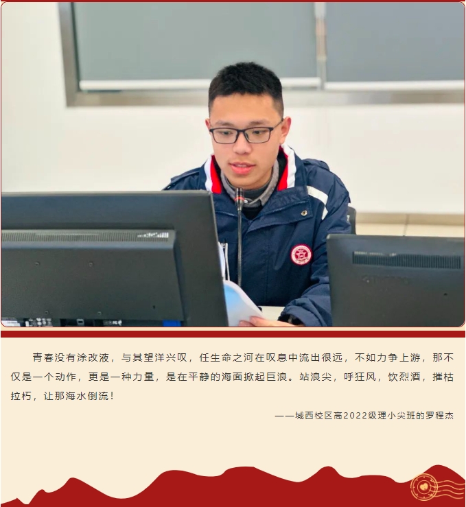 忠山校區(qū)簡容申、城西校區(qū)羅程杰、茜草校區(qū)孫彧軒作為學(xué)生代表發(fā)言,