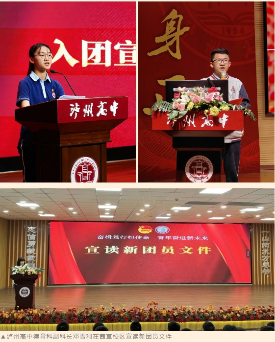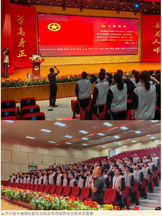 學(xué)校領(lǐng)導(dǎo)對團(tuán)員們提出殷切希望與要求:不忘初心心向黨,聽黨號召愛國愛校爭做忠勇瀘高人;挺膺擔(dān)當(dāng)謀復(fù)興,立志明德爭做時(shí)代新人;踔厲奮發(fā)爭先鋒,成人成才爭做模范的大寫瀘高人。