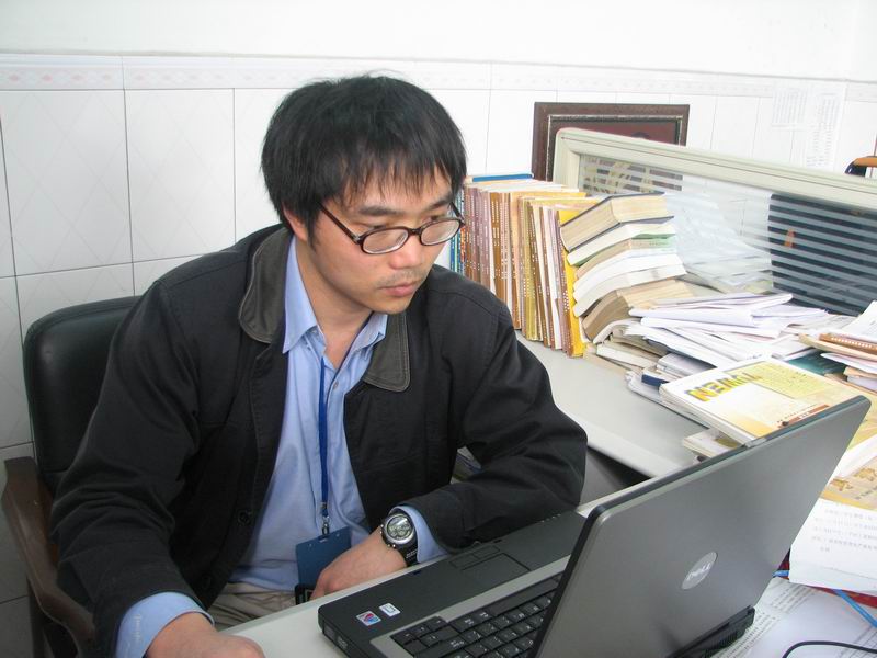 在數(shù)九寒天的瀘高校園內(nèi),一個(gè)身著單衣或襯衣的身影,常常引來師生們驚奇而羨慕的目光。他體格健壯,精神飽滿,或匆匆來往于教室與辦公室之間,或在辦公桌前批改作業(yè),或與老師交流,或與學(xué)生談心,每天似乎有使不完的勁頭。他,就是瀘州市首批名師、瀘州高中高三年級(jí)組長(zhǎng)、瀘高語文高級(jí)教師周渝。雖已人到中年,可是,看到他的身影,聽到他的名字,不由人不想到雄姿英發(fā)的三國周瑜。