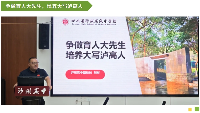 劉彬副校長系統(tǒng)梳理瀘高文化脈絡(luò),溯源辦學(xué)歷史,闡釋“瀘高精神”內(nèi)核與立德樹人使命,明確以培養(yǎng)“胸懷家國、全面發(fā)展”的“大寫瀘高人”為目標(biāo),強調(diào)通過卓越師資建設(shè)支撐高質(zhì)量育人,深化新時代“大先生”的教育擔(dān)當(dāng)。