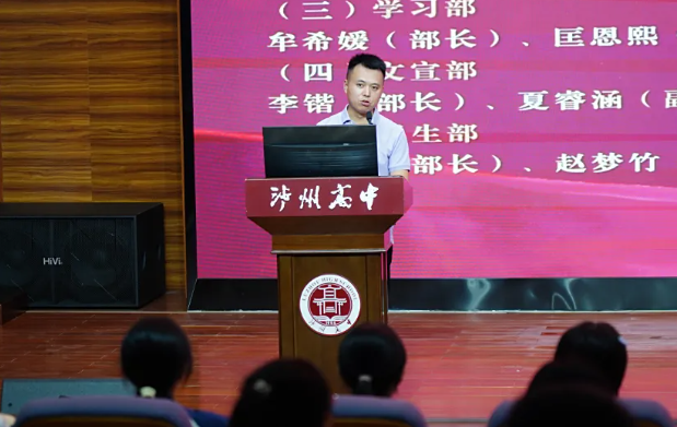 校團委副書記童鑫宣讀《瀘州高中忠山校區(qū)高2025級學生分會成員名單》,宣布經民主選舉產生的新一屆學生分會干部正式履職。