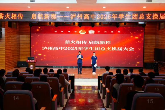 青春鑄華章,奮進(jìn)新時(shí)代。為深入貫徹落實(shí)習(xí)近平總書記關(guān)于青年工作的重要思想,強(qiáng)化基層團(tuán)組織戰(zhàn)斗堡壘作用,團(tuán)結(jié)引領(lǐng)廣大青年學(xué)子在實(shí)現(xiàn)中華民族偉大復(fù)興的征程中勇?lián)姑,共青團(tuán)四川省瀘州高級(jí)中學(xué)校委員會(huì)2025年忠山校區(qū)學(xué)生團(tuán)總支換屆大會(huì)在瀘高大講堂舉行。200余名師生代表共同見證薪火相傳的青春時(shí)刻。學(xué)校黨委委員、副校長(zhǎng)劉彬,德育科科長(zhǎng)楊永成,團(tuán)委副書記童鑫及學(xué)生代表參加會(huì)議。