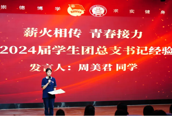 2024-2025學(xué)年度學(xué)生團(tuán)總支書記周美君以《薪火相傳 青春接力》為題作經(jīng)驗(yàn)分享,這是一年以來在風(fēng)雨中成長(zhǎng)交出的圓滿答卷。
