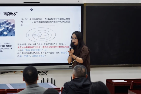 楊婧解讀了2025年四川高考生物閱卷細則,分析閱卷場上答案規(guī)范化,思維邏輯化,語言表達精準化的得分規(guī)律,并對此進行反思。她提出相應備考建議,即縮小“溫差”,實現(xiàn)精準表達。