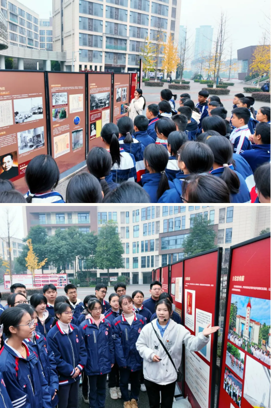 瀘州高中校團(tuán)委書記王成林表示,抗戰(zhàn)主題巡展進(jìn)校園活動(dòng),通過(guò)豐富珍貴的圖文資料生動(dòng)再現(xiàn)烽火歲月,讓學(xué)生直觀感悟革命先烈的家國(guó)情懷、厚植愛國(guó)愛黨根基。這既是課堂思政教育的生動(dòng)延伸,更是一次沉浸式的精神洗禮,有助于引導(dǎo)學(xué)生堅(jiān)定理想信念,將愛國(guó)情、強(qiáng)國(guó)志轉(zhuǎn)化為勤學(xué)篤行的實(shí)際行動(dòng),自覺傳承紅色基因、汲取成長(zhǎng)奮進(jìn)力量。此外,學(xué)校持續(xù)深化愛國(guó)主義教育與黨的精神譜系宣傳教育,組織學(xué)生觀看九三閱兵視頻厚植家國(guó)情懷,在“九一八”事變紀(jì)念日開展“以史為鑒、勇?lián)姑敝黝}活動(dòng),結(jié)合五四青年節(jié)回望百年征程、傳承奮斗精神,引導(dǎo)學(xué)生將個(gè)人理想融入民族復(fù)興偉業(yè);依托主題團(tuán)課、校園廣播站等平臺(tái),系統(tǒng)宣講建黨以來(lái)的精神譜系,讓紅色基因深度融入校園血脈,引導(dǎo)廣大學(xué)生感悟初心使命、凝聚青春力量、主動(dòng)擔(dān)當(dāng)作為,在新時(shí)代新征程上勇毅前行。