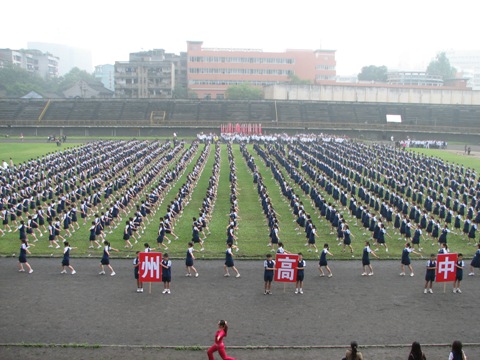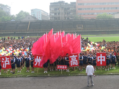 四月二十九日上午10:00-11:00, 在瀘州市體育館,瀘州高中高2009級(jí)1500余名學(xué)生參加由教育部、國(guó)家體育總局、共青團(tuán)中央發(fā)起的全國(guó)億萬(wàn)學(xué)生陽(yáng)光體育運(yùn)動(dòng)瀘州地區(qū)啟動(dòng)儀式。全體同學(xué)著裝整齊,高呼口號(hào),精神抖擻,意氣風(fēng)發(fā),展示了瀘高學(xué)子良好的精神風(fēng)貌,得到與會(huì)各級(jí)領(lǐng)導(dǎo)的高度評(píng)價(jià)。