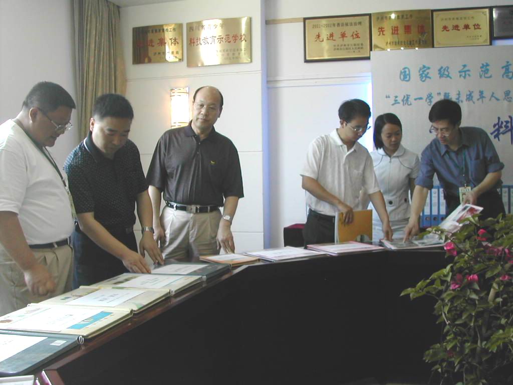 5月17日上午10:30,團(tuán)省委副書(shū)記周鍵、團(tuán)省委宣傳部部長(zhǎng)李陽(yáng)學(xué)代表四川省到瀘州高中檢查“三優(yōu)一學(xué)”工作,瀘州市委副書(shū)記趙錫嘉、團(tuán)市委書(shū)記徐利、市教育局副局長(zhǎng)劉濤等領(lǐng)導(dǎo)陪同前往檢查。瀘州高中肖林校長(zhǎng)、王曉云副校長(zhǎng)、趙曉林副校長(zhǎng)等領(lǐng)導(dǎo)接待檢查。周書(shū)記一行參觀(guān)了瀘州高中文化墻、蘭蕙苑、曲水廣場(chǎng)、校史陳列室,一邊參觀(guān),一邊聽(tīng)取瀘州高中肖林校長(zhǎng)的工作匯報(bào)。周書(shū)記認(rèn)真查閱有關(guān)資料,特別對(duì)校團(tuán)委工作給予關(guān)注,向肖校長(zhǎng)詢(xún)問(wèn)有關(guān)團(tuán)的建設(shè)和開(kāi)展活動(dòng)情況。