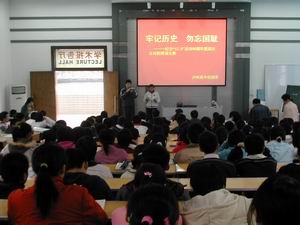 下午2:30,高一年級12個班的同學在教室觀看了由學校網(wǎng)管中心發(fā)送的愛國主義影片《南京大屠殺》,之后召開主題班會進行討論,同學們紛紛發(fā)言,暢談自己的感想。表現(xiàn)出積極追求上進的決心和濃郁的愛國主義感情。學生們一致表示要為了國家和民族的振興而努力讀書。