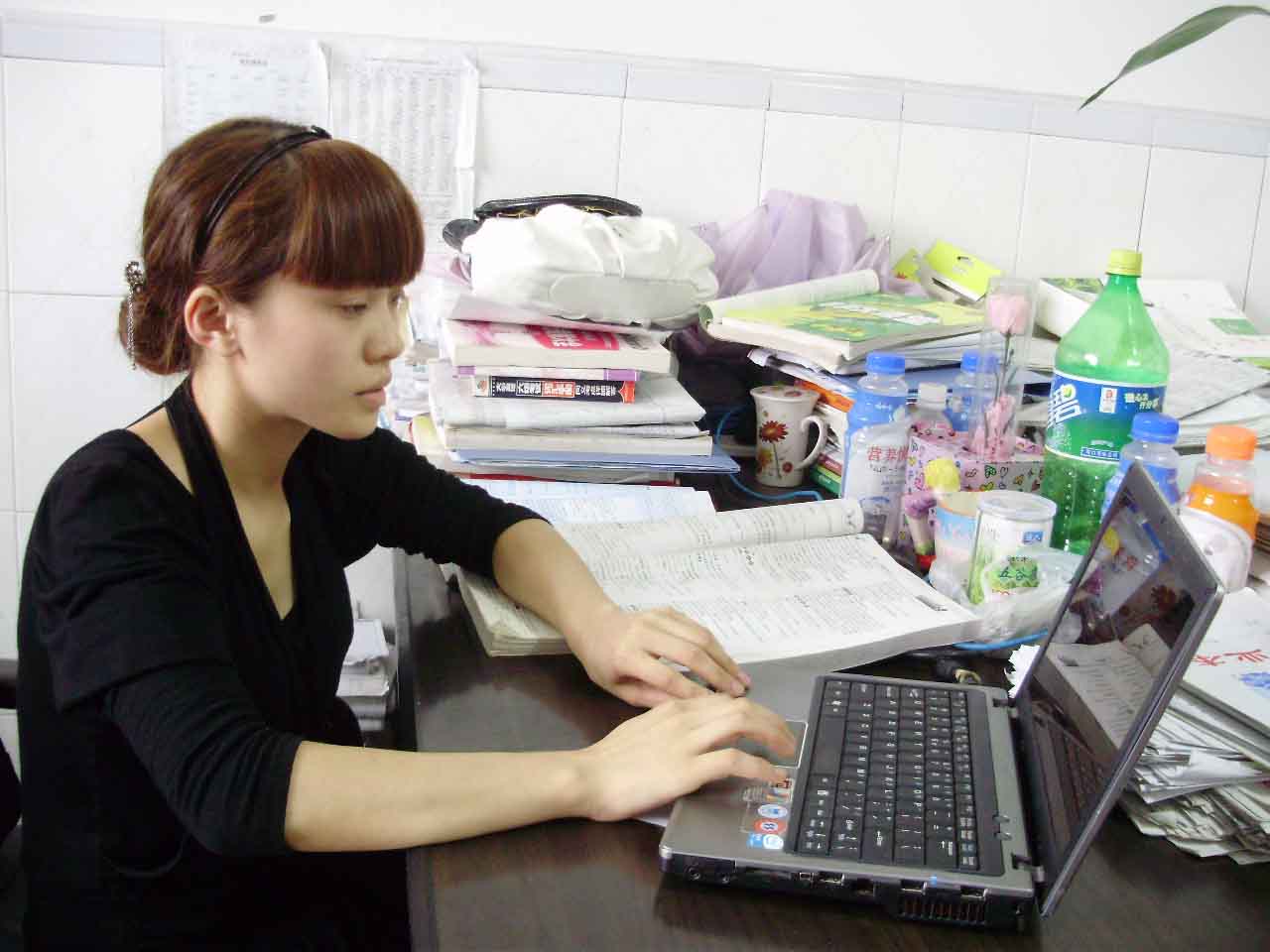 為了推進(jìn)教育現(xiàn)代化,滿足教師獲取信息資料、提高工作效率的需要,瀘州高中給每個老師配備了一臺筆記本電腦。圖為瀘高教師正用筆記本電腦備課。