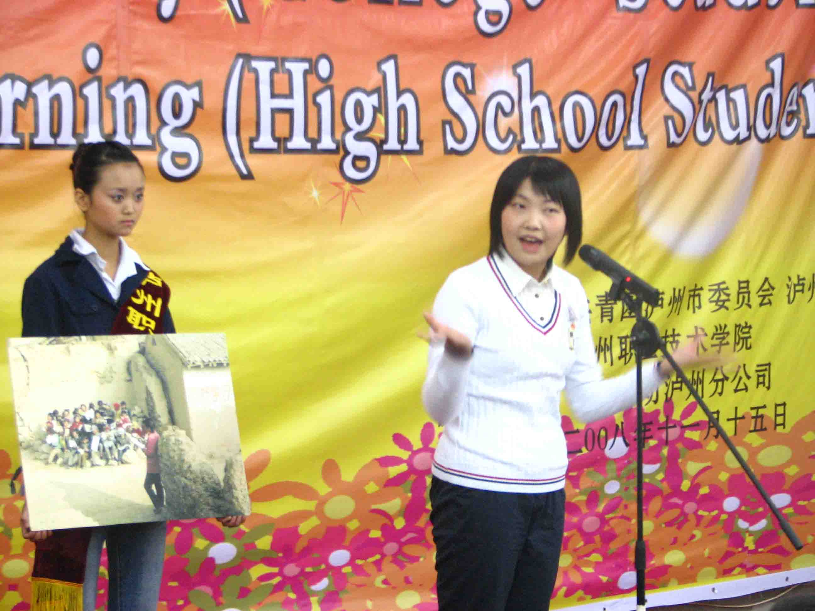 11月15日,市第十三屆“忠山之秋”大中學(xué)生英語(yǔ)演講決賽在瀘州職業(yè)技術(shù)學(xué)院舉行,瀘州高中團(tuán)體和個(gè)人均獨(dú)領(lǐng)風(fēng)騷,包攬第一,充分展現(xiàn)了瀘高的英語(yǔ)教學(xué)特色。