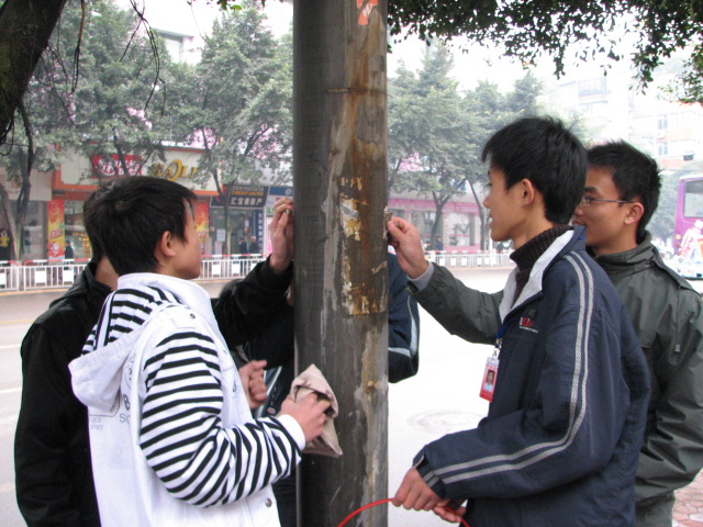 自我市開展“城鄉(xiāng)環(huán)境綜合整治”活動(dòng)以來,瀘州高中除以此為契機(jī)創(chuàng)建國家級(jí)“綠色學(xué)校”,加大校園環(huán)境整治外,還動(dòng)員全校師生積極參與社區(qū)環(huán)境的整治活動(dòng)。26日,師生們冒著嚴(yán)寒,走到街頭,有的提水、拿抹布和鋼絲球,有的拿掃帚、撮箕和鐵鏟,經(jīng)過近1個(gè)小時(shí)的緊張勞動(dòng),清除電線桿、電話停等公共設(shè)施上的牛皮癬和地上的落葉、垃圾、衛(wèi)生死角,使該段街道的面貌煥然一新,受到社區(qū)居民和行人的好評(píng)。(完)